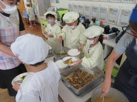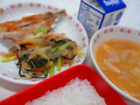 2学期になり、1年生も給食の準備が早くなりました。 野菜が苦手な児童が多く、給食でも一番多く残りますが、「昆布あえ」はどの学年にも人気があります。 作り方は、茹でた野菜の水気をしぼり、塩昆布とごま油で和えるだけです。 ぜひ、ご家庭でお子様と一緒に作ってみてください。 |