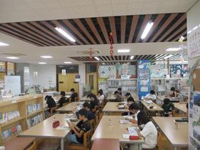 業間休みには多くの児童が図書室に来て本を読んでいます。 ゆっくり読書ができる過ごしやすい季節になるにはまだ少しかかりそうですが、友達と読書を楽しむ姿が見られました。 |