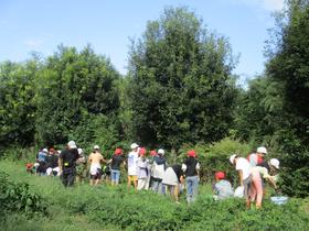 7月に種蒔きをしたひまわりの花がたくさん咲き、休み時間にひまわり迷路を楽しむことができました。 近くで大きなクワガタも見つけました。 |