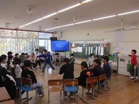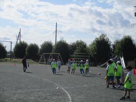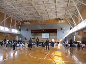 鹿島アントラーズのサッカースクールコーチの方々によるサッカー教室が行われ、5年生が参加しました。 ミニゲームを行うなどして、サッカー初心者も経験者も楽しい時間を過ごしました。 |