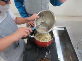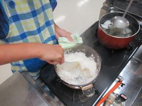 5年生が家庭科で、ご飯とみそ汁の調理実習をしました。 煮干しで出汁を取ったみそ汁は、出汁の風味がしっかり出て、ご飯もふっくらと炊き上がっていました。 |
