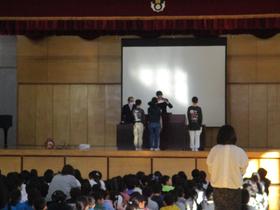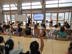 1年生が、水戸ヤクルト販売株式会社の管理栄養士を講師に招き、「早ね 早起き 朝ごはん 朝うんち」について、お話をしていただきました。 食べ物の通り道である小腸や大腸の長さを知ることができました。 食事や睡眠だけでなく、生活リズムの中に毎日の排便も大切ですね。 |