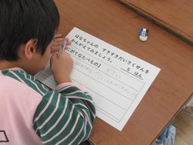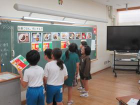 3年生が食育の授業で、食べたいお昼ごはんを選び、食材のお買い物をし、それぞれの料理を見比べながら、バランスの良い食事について学習をしました。 多くの児童は、「苦手な食べ物を一口は食べる」という目標を立てていました。 |