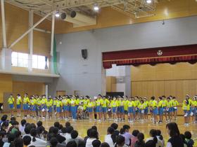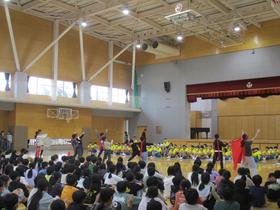 今日は、陸上記録会の壮行会を行いました。 1年生〜5年生による力強い応援で6年生にエールを送りました。 |
