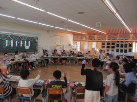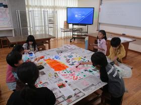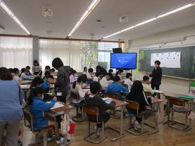 4年生が理科で「わたしたちの体と運動」について学習しています。 模型を使って、うでの骨はどのようなつくりになっているのか、どのように動くのかをグループの仲間と熱心に考えていました。 |