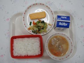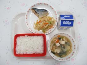今日の「おはなしめぐり給食」は、「やきざかなののろい」からさばの塩焼き、「はなちゃんのみそ汁」のみそ汁です。 日本の伝統的な食文化として、ユネスコ無形文化遺産に登録されている和食を味わえる給食でした。 |