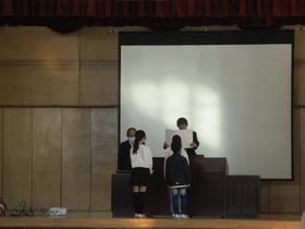 今日は全校朝会を行いました。 6年生の平和大使が、広島に訪れた際に体験したことを報告しました。 |