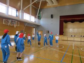 5年生が体育の授業で大縄跳びの学習を行いました。 クラスの仲間に声を掛け合いながら、記録に挑戦する姿が見られました。 |